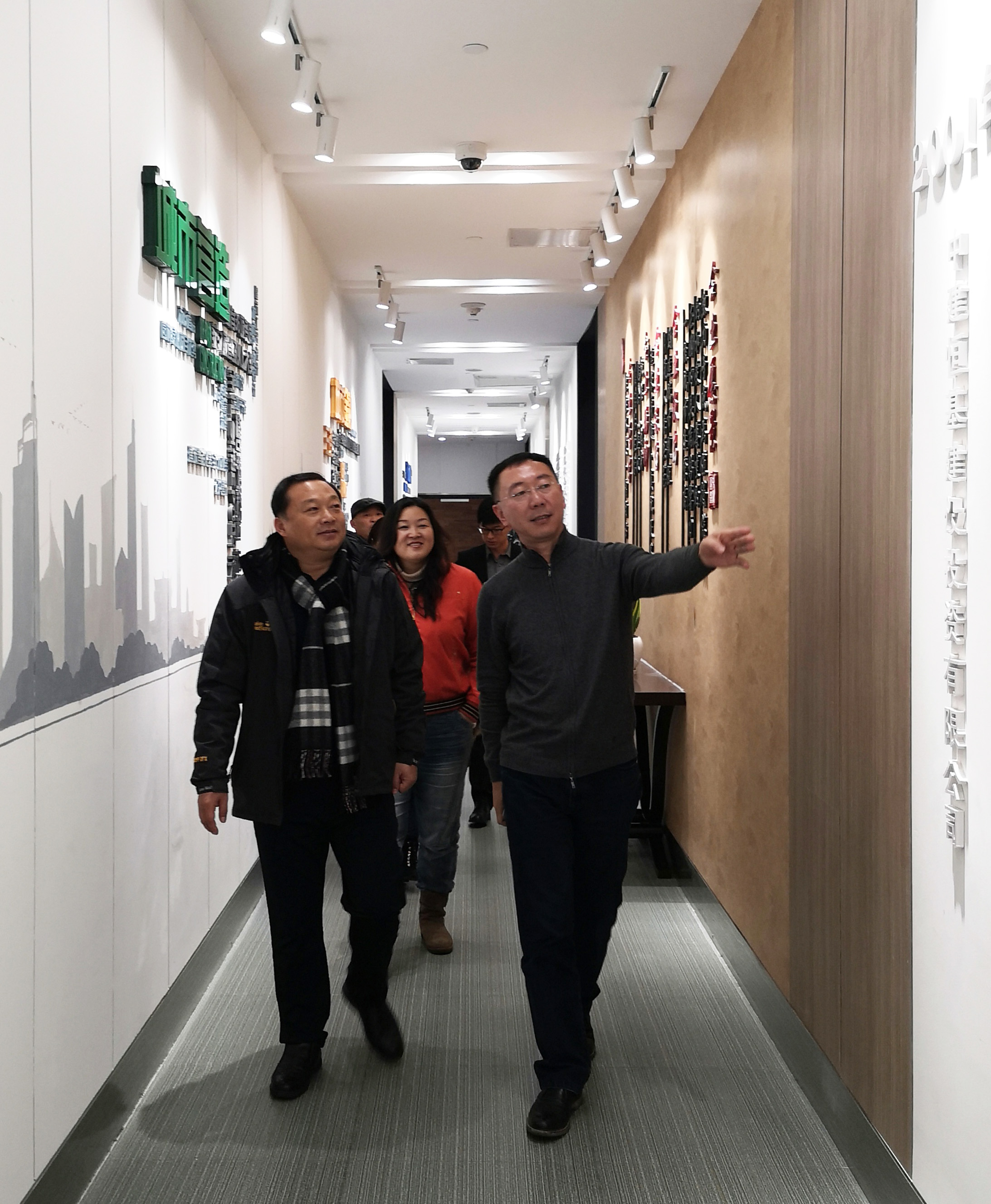 肖董事長(zhǎng)邀請(qǐng)朱克主任一行參觀中景恒基文化墻