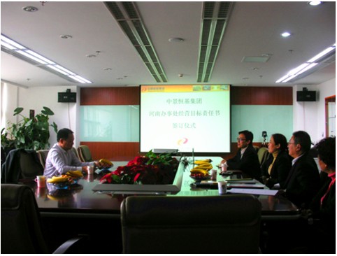 最后,集團副總裁桓總代表集團與河南辦事處負責(zé)人蔡總正式簽署經(jīng)營目標責(zé)任協(xié)議書。河南辦事處的設(shè)立完成,預(yù)示著中景恒基集團將以中原為核心,進入國內(nèi)業(yè)務(wù)市場橫向拓寬、縱向延伸的又一新的發(fā)展時期。讓我們拭目以待,中景恒基的未來必將更為輝煌。