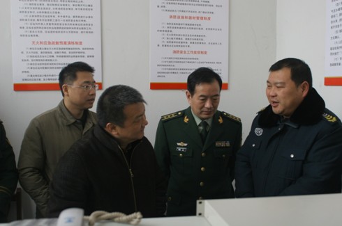 1月10日陳益新少將一行專程從南京來到連云港,視察消防安全工作,在連云港市消防支隊(duì)武警官兵的陪同下對新世紀(jì)商貿(mào)城的消防安全工作進(jìn)行了檢查和指導(dǎo)。