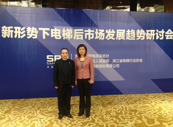 2014年3月6日,由《中國(guó)電梯》雜志社主辦,森赫電梯股份有限公司承辦、浙江省電梯行業(yè)協(xié)會(huì)協(xié)辦的“新形勢(shì)下電梯后市場(chǎng)發(fā)展趨勢(shì)研討會(huì)”在湖州舉行。出席會(huì)議的有:國(guó)家質(zhì)檢總局特種設(shè)備安全監(jiān)察局電梯處處長(zhǎng)張宏偉,中國(guó)電梯協(xié)會(huì)副秘書長(zhǎng)、中國(guó)電梯雜志社社長(zhǎng)李增健,機(jī)械工業(yè)職業(yè)技能鑒定電梯行業(yè)分中心副主任趙光瀛,電梯行業(yè)資深專家張桂竹,國(guó)家質(zhì)檢總局電梯處工程師李趙,龐大汽貿(mào)集團(tuán)汽車資深專家李明以及來(lái)自全國(guó)各省市的電梯商會(huì)、電梯協(xié)會(huì)以及三菱、通力、迅達(dá)、蒂森等電梯整機(jī)制造企業(yè)和安裝維保企業(yè)代表共計(jì)100多人,中聯(lián)迅杰董事長(zhǎng)李雅鴻應(yīng)邀出席會(huì)議。