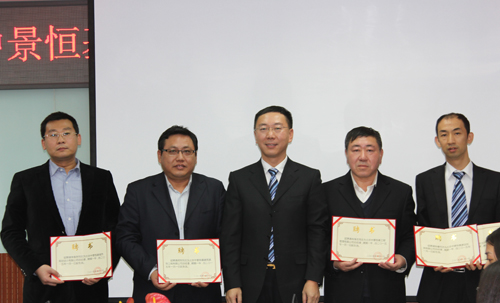 集團高級總裁時亮、張睿,副總裁桓朝暉、蔡菊接受聘書