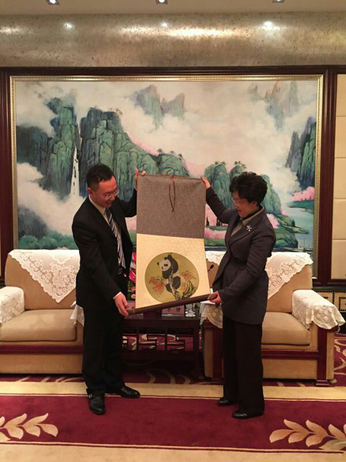 會(huì)后李書記代表眉山市委市政府向肖董事長贈(zèng)送了眉山的非物質(zhì)文化遺產(chǎn)——青神竹編作為紀(jì)念。