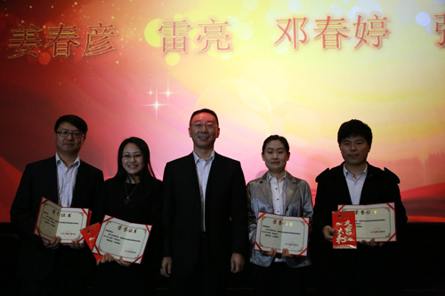 一年一度的股份公司年會(huì)是一個(gè)榮耀的舞臺(tái),也是一個(gè)弘揚(yáng)中景文化的平臺(tái)。在這里,公司對一年來不同戰(zhàn)線上的各級員工們進(jìn)行逐一表彰。他們這一年來以蓬勃的朝氣、昂揚(yáng)的銳氣、無畏的勇氣,開拓創(chuàng)新,勇往直前,成就了公司2014年度的碩果累累。本次年會(huì)沿襲傳統(tǒng)頒發(fā)了優(yōu)秀新人和優(yōu)秀員工兩項(xiàng)大獎(jiǎng),同時(shí)還創(chuàng)新的頒發(fā)了15個(gè)特色獎(jiǎng)項(xiàng)。“黃牛獎(jiǎng)”、“微笑服務(wù)獎(jiǎng)”、“風(fēng)險(xiǎn)控制獎(jiǎng)”“救火隊(duì)員獎(jiǎng)”、“最具人氣獎(jiǎng)”、“伯樂獎(jiǎng)”等等獎(jiǎng)項(xiàng),生動(dòng)的表現(xiàn)出了公司各級員工在不同崗位為公司做出的突出貢獻(xiàn)。其中,集團(tuán)董事長、首席執(zhí)行官肖厚忠獲得“陀螺獎(jiǎng)”,該獎(jiǎng)項(xiàng)形象的展現(xiàn)出肖總為中景夢甘心付出,愿做永不停歇的陀螺,不斷地勾畫集團(tuán)未來發(fā)展藍(lán)圖的模范作用。獲獎(jiǎng)后,肖總對中景恒基各級員工一年來的辛苦工作與無私奉獻(xiàn)表示感謝,并表達(dá)了對集團(tuán)未來發(fā)展的期許,同時(shí)為在場及遠(yuǎn)在眉山、連云港、成都、杭州、鄭州、南寧、廣東等地的集團(tuán)總部一線員工送上新春祝福。表彰活動(dòng)結(jié)束后,現(xiàn)場放映了影片《我要你開花》,并進(jìn)行觀影交流,影片展現(xiàn)的“向上向前”、“追逐夢想”、“創(chuàng)客思維”等精神與中景恒基所弘揚(yáng)的企業(yè)精神相符,引起了大家的廣泛共鳴。