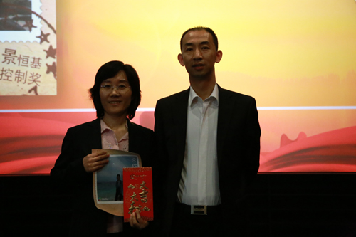 集團(tuán)高級總裁張睿為獲得“風(fēng)險(xiǎn)控制獎(jiǎng)”的集團(tuán)財(cái)務(wù)審計(jì)部經(jīng)理羅愛霞頒獎(jiǎng)