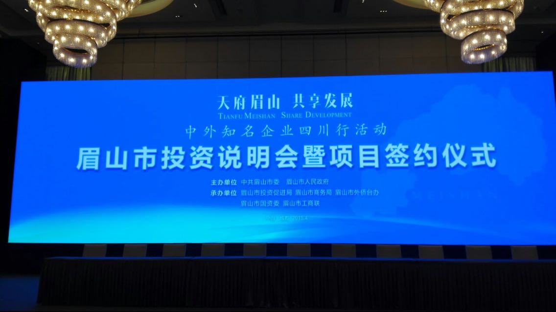 4月22日下午,肖董事長、時總參加了“中外知名企業(yè)四川行——眉山市投資說明會暨項目簽約儀式”。此次會議的主題是:“天府眉山,共享發(fā)展”。會議由眉山市市長宋朝華主持,市委書記李靜向來賓致辭。李書記表示,眉山是一個充滿活力的城市,是眾多企業(yè)的投資熱點;投資眉山也一定能夠給各企業(yè)的發(fā)展提供良好的回報。省人大副主任張東升參加了此次投資說明會并發(fā)表了講話。