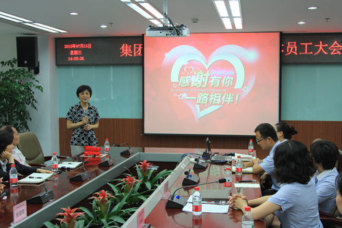 2015年7月15日下午,集團公司于總部會議室召開上半年工作總結(jié)暨表彰大會。董事長兼首席執(zhí)行官肖厚忠出席,會議由高級總裁張睿主持。