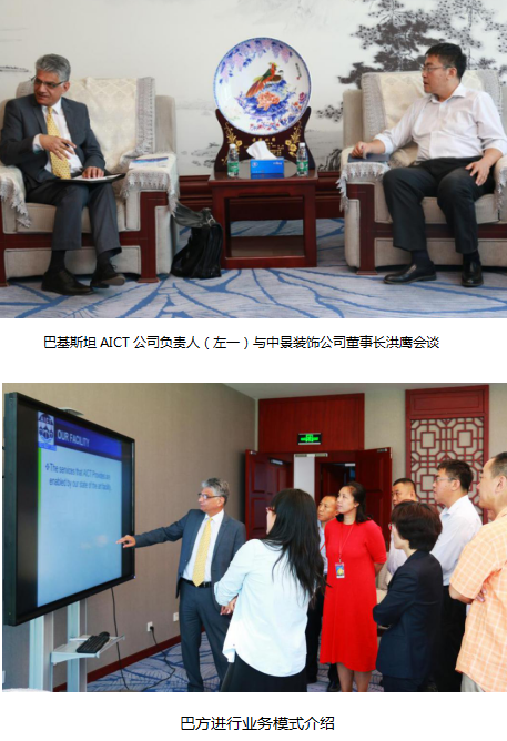 (通訊員 周玲)6月1日,中景恒基投資集團(tuán)旗下北京中景恒基建筑裝飾工程有限公司(以下簡稱中景裝飾公司)與巴基斯坦AICT公司考察團(tuán)一行在集團(tuán)三層會議室進(jìn)行商務(wù)會談。北京海龍國際運(yùn)輸代理有限公司有關(guān)領(lǐng)導(dǎo)參加會談。
