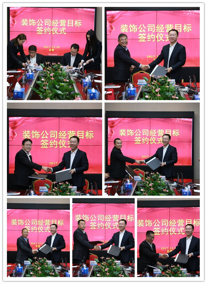 2017年12月19日,中景裝飾公司經(jīng)營(yíng)目標(biāo)簽約儀式在集團(tuán)視頻會(huì)議室召開(kāi),肖厚忠董事長(zhǎng)率領(lǐng)集團(tuán)領(lǐng)導(dǎo)、中景裝飾公司經(jīng)營(yíng)目標(biāo)責(zé)任人及各部門(mén)負(fù)責(zé)人參加了此次會(huì)議。會(huì)議聚焦“創(chuàng)新引領(lǐng)新發(fā)展,二次創(chuàng)業(yè)構(gòu)新景”的主題,這不僅僅是一次經(jīng)營(yíng)目標(biāo)簽約儀式,更是新常態(tài)背景下一次戰(zhàn)場(chǎng)集結(jié)和沙場(chǎng)點(diǎn)兵,立足當(dāng)下,展望2018年以及更遠(yuǎn)大的未來(lái),運(yùn)籌帷幄、決勝千里。