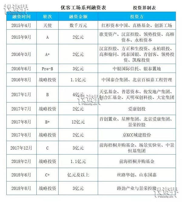 不但如此,參與優(yōu)客工場(chǎng)2017年12月C輪融資的中景恒基集團(tuán)董事長(zhǎng)肖厚忠也曾表示,雙方商業(yè)模式的不謀而合和優(yōu)客工場(chǎng)的團(tuán)隊(duì)能力是投資的初衷。