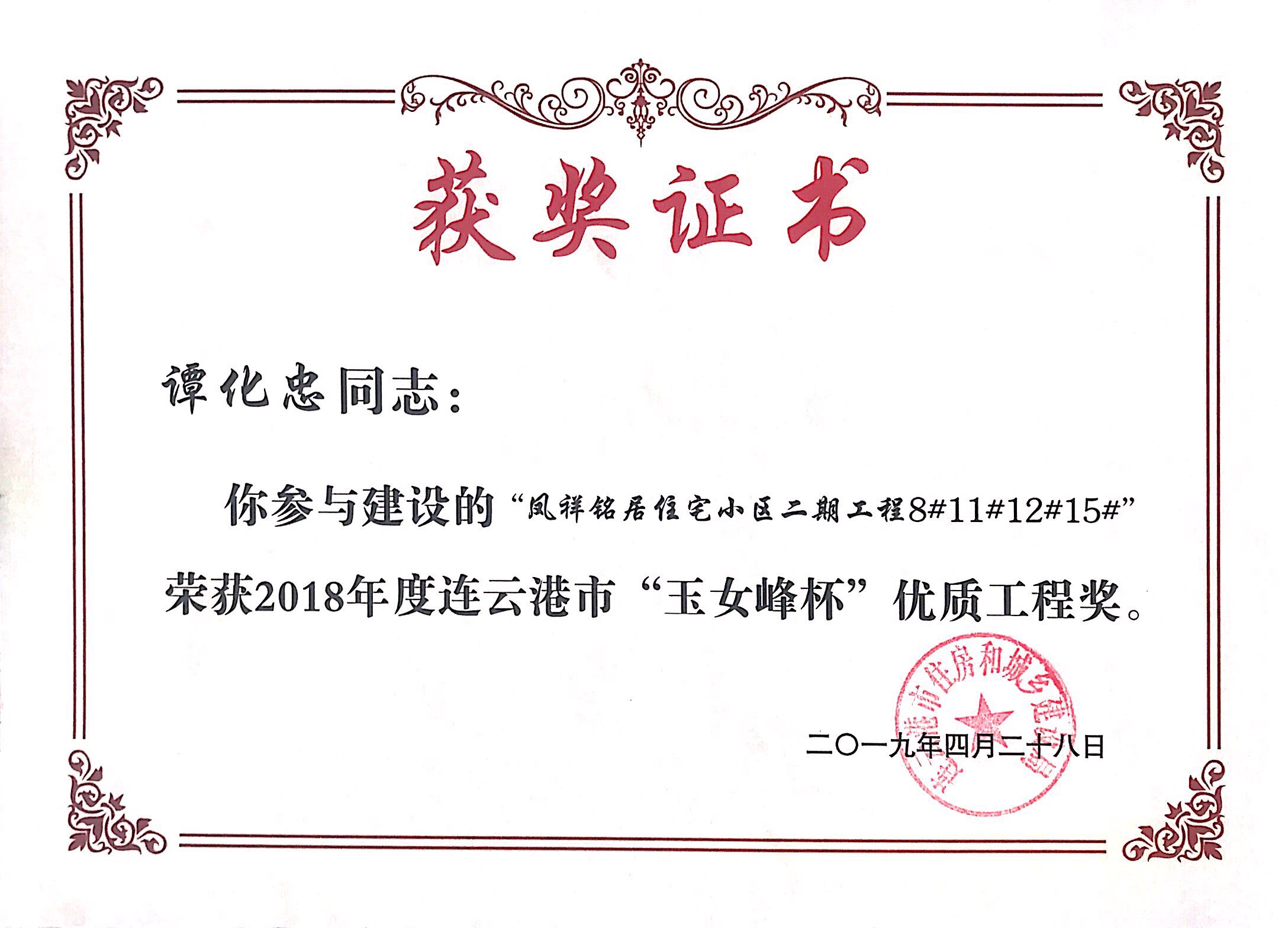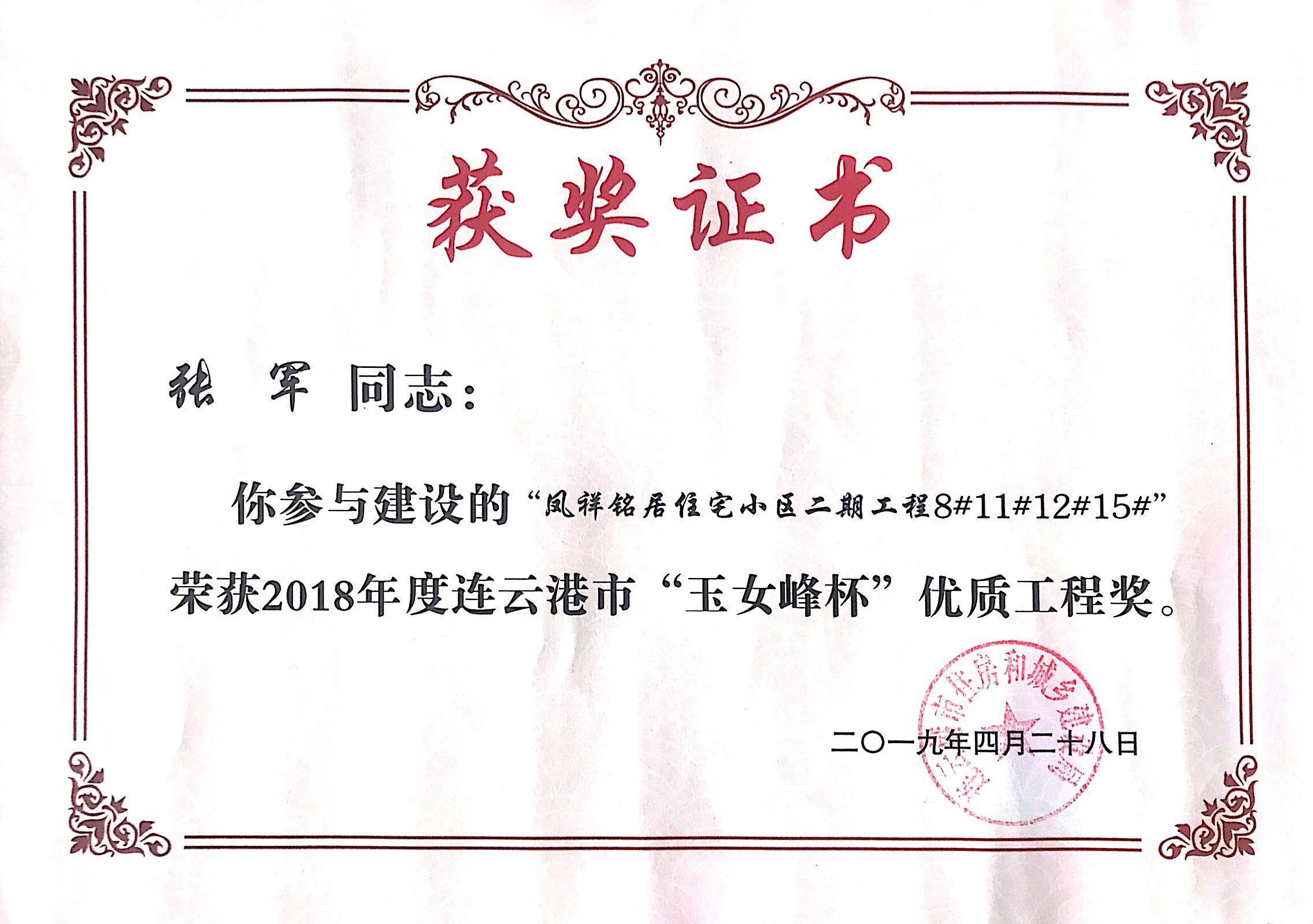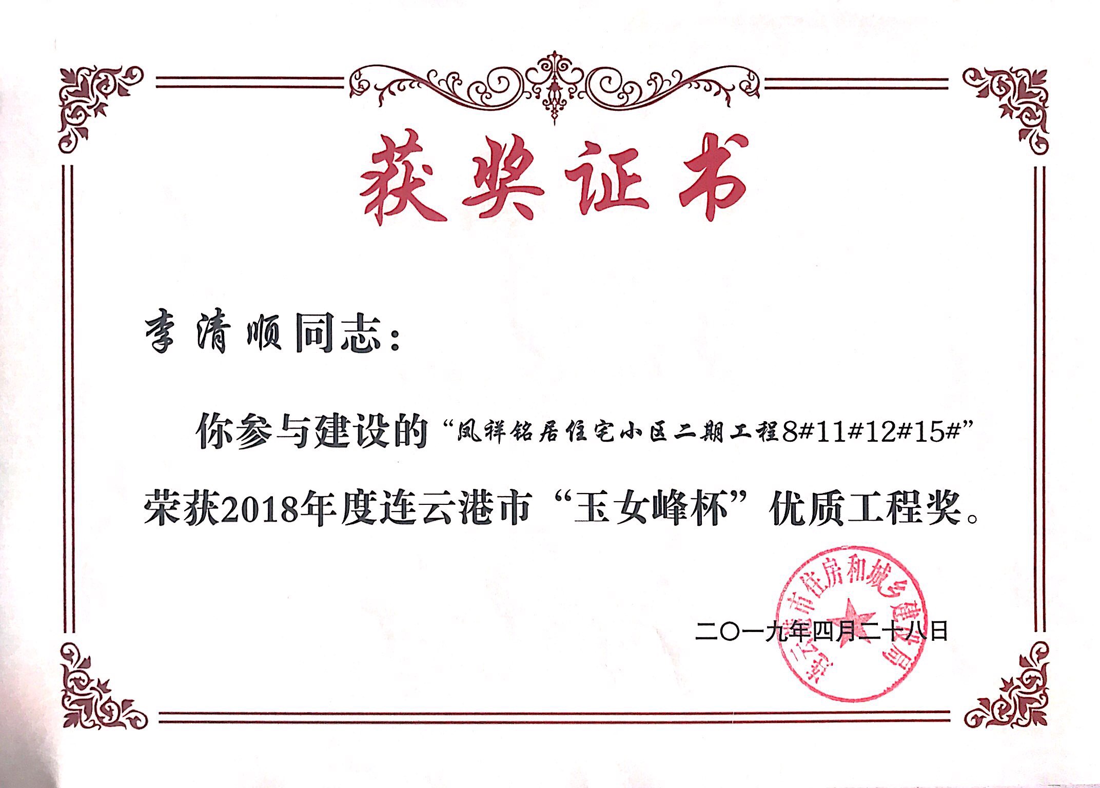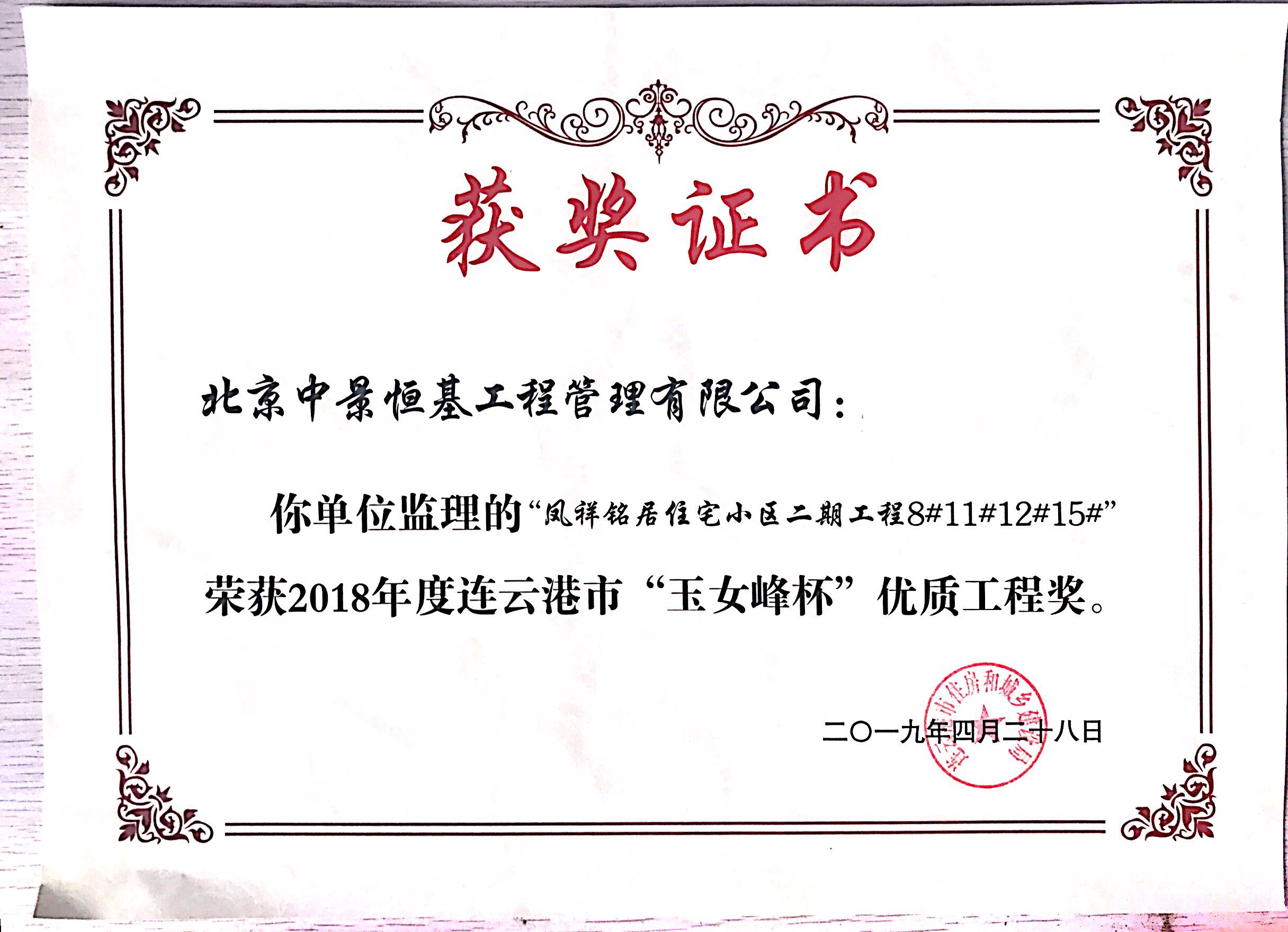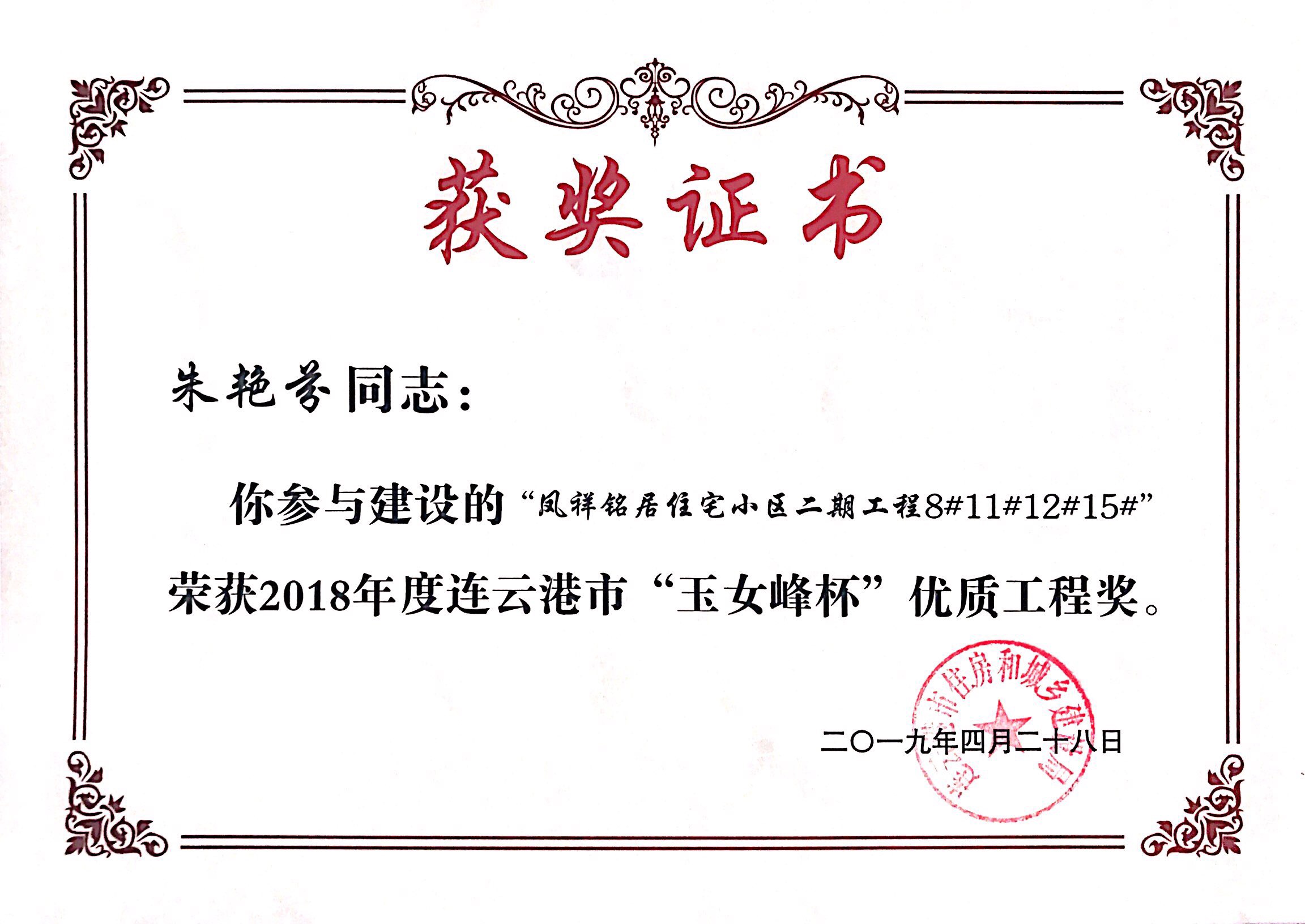 近日,鳳祥銘居小區(qū)再次榮獲連云港市玉女峰杯優(yōu)質(zhì)工程獎(jiǎng)。玉女峰杯系連云港建筑施工領(lǐng)域工程質(zhì)量最高獎(jiǎng)項(xiàng),此前,該項(xiàng)目已多次獲得省級(jí)、市級(jí)行業(yè)主管部門表彰?,F(xiàn)已順利完成整體交付工作。