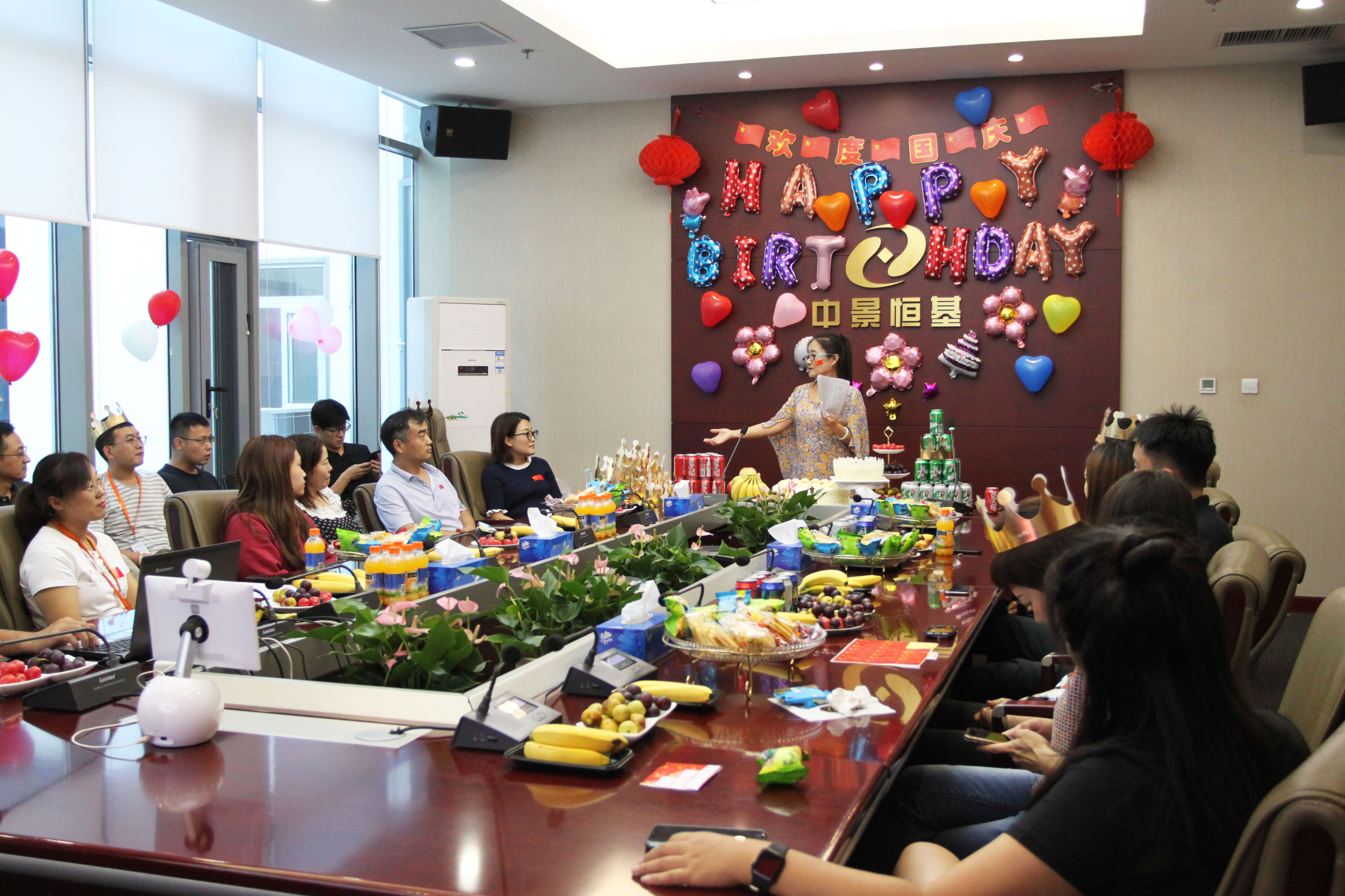 此次生日會(huì)分為壽星(新人)介紹、游戲互動(dòng)、幸福傳遞和為祖國慶生四部分。各位同事在歡聲笑語中增進(jìn)情誼,在游戲中培養(yǎng)默契,在生日燭光的傳遞中互贈(zèng)祝福,短暫的生日會(huì)提升了各部門各團(tuán)隊(duì)的合作精神,游戲參與者們更是收獲了精美的禮物。