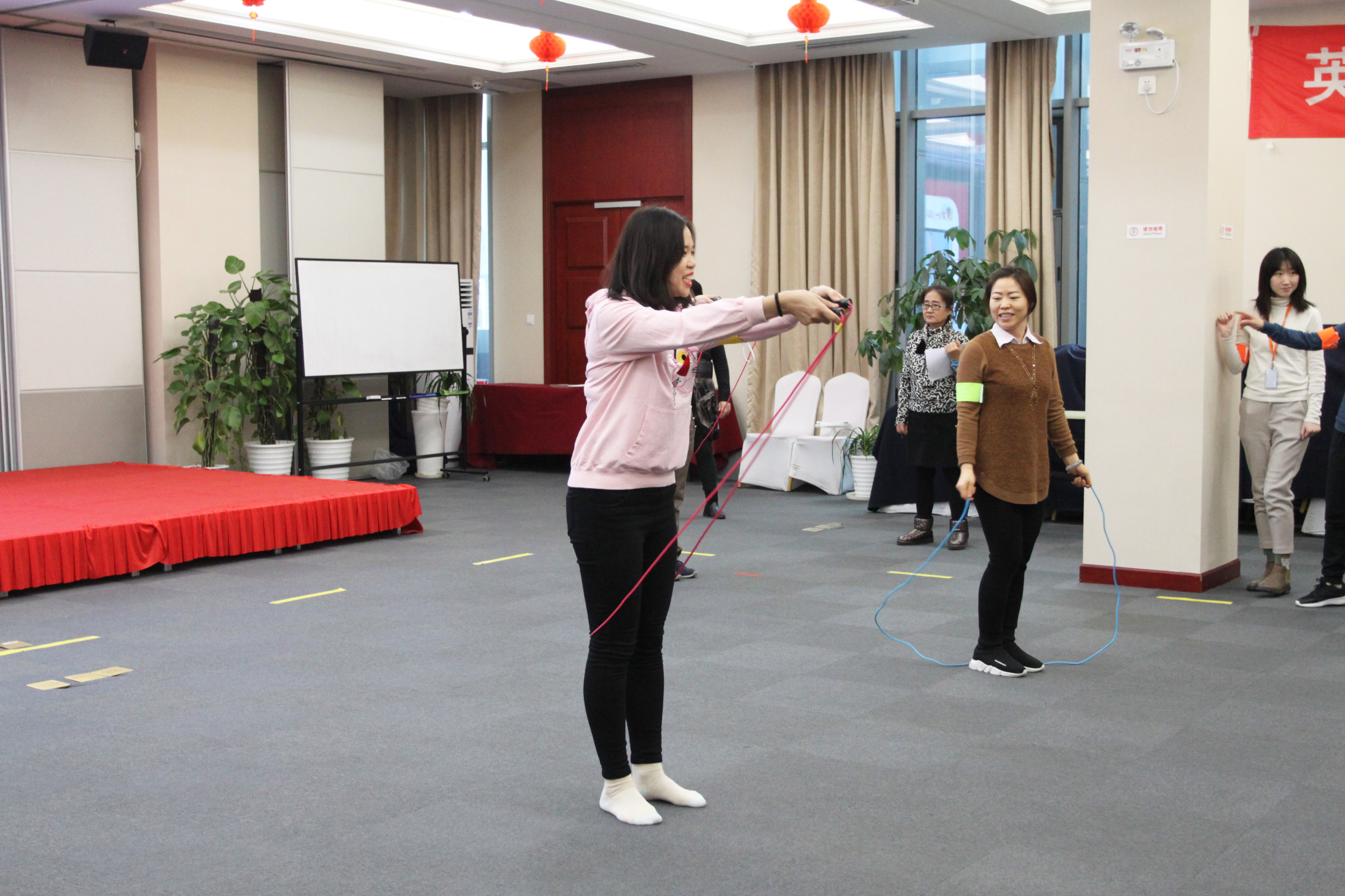 運動會包括團隊跳繩、往返接力跑、搭橋過河、電動小馬達和囤面粉哪家強共五個團體項目,運動員們勇于挑戰(zhàn)自我,團結拼搏,競爭十分激烈,賽程歷時近3小時。