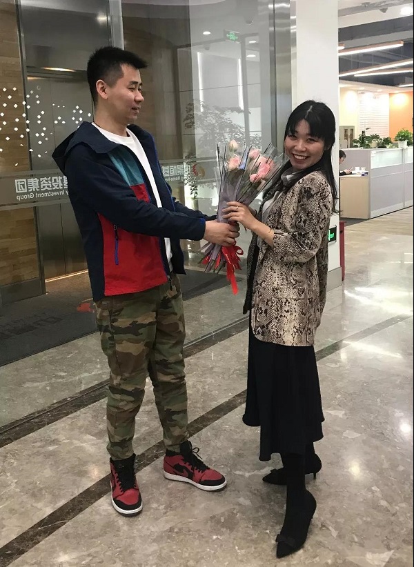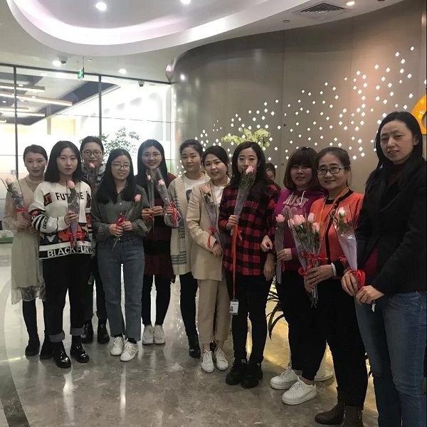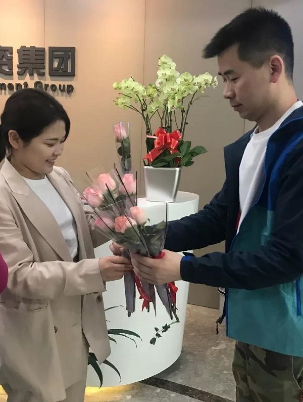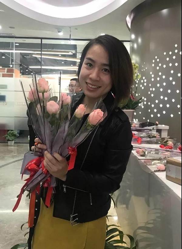 收到祝福的女同事臉上洋溢著幸福的笑容。為了祝福女同事,男同事們也積極做起了送花使者,為女同事們送上衷心的祝福。